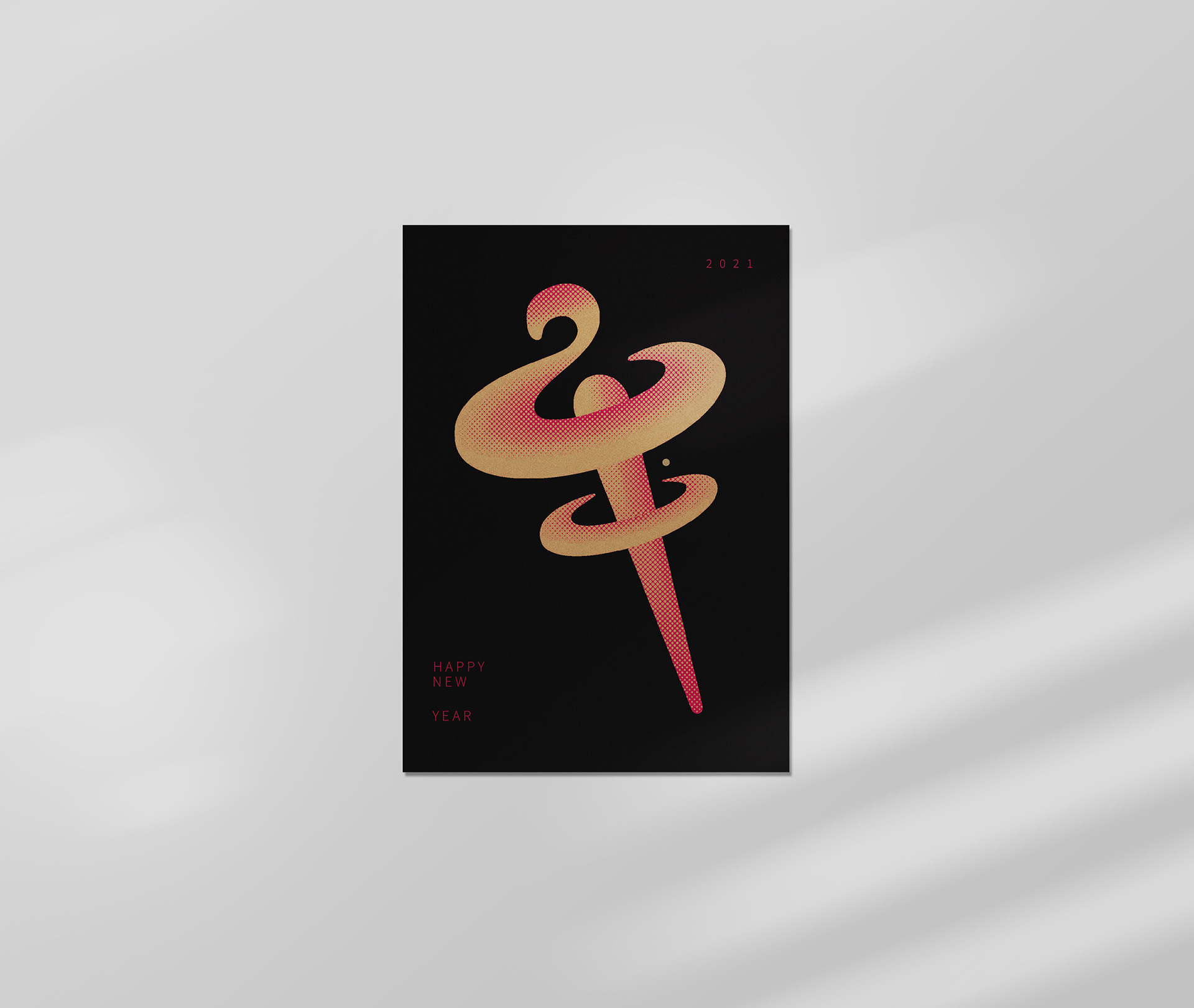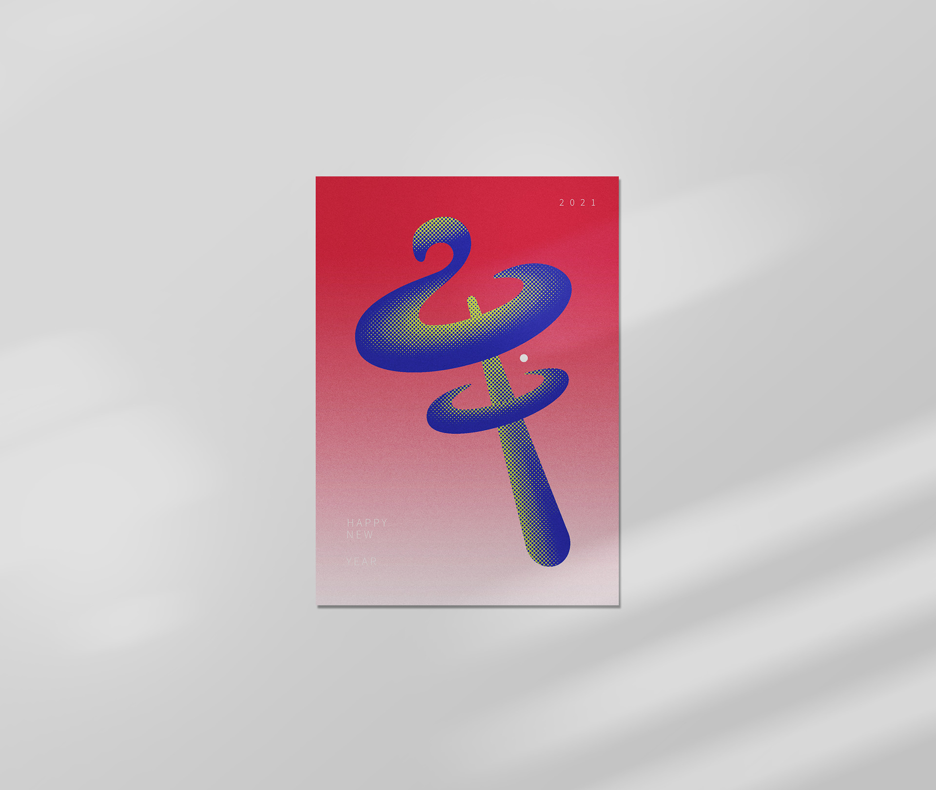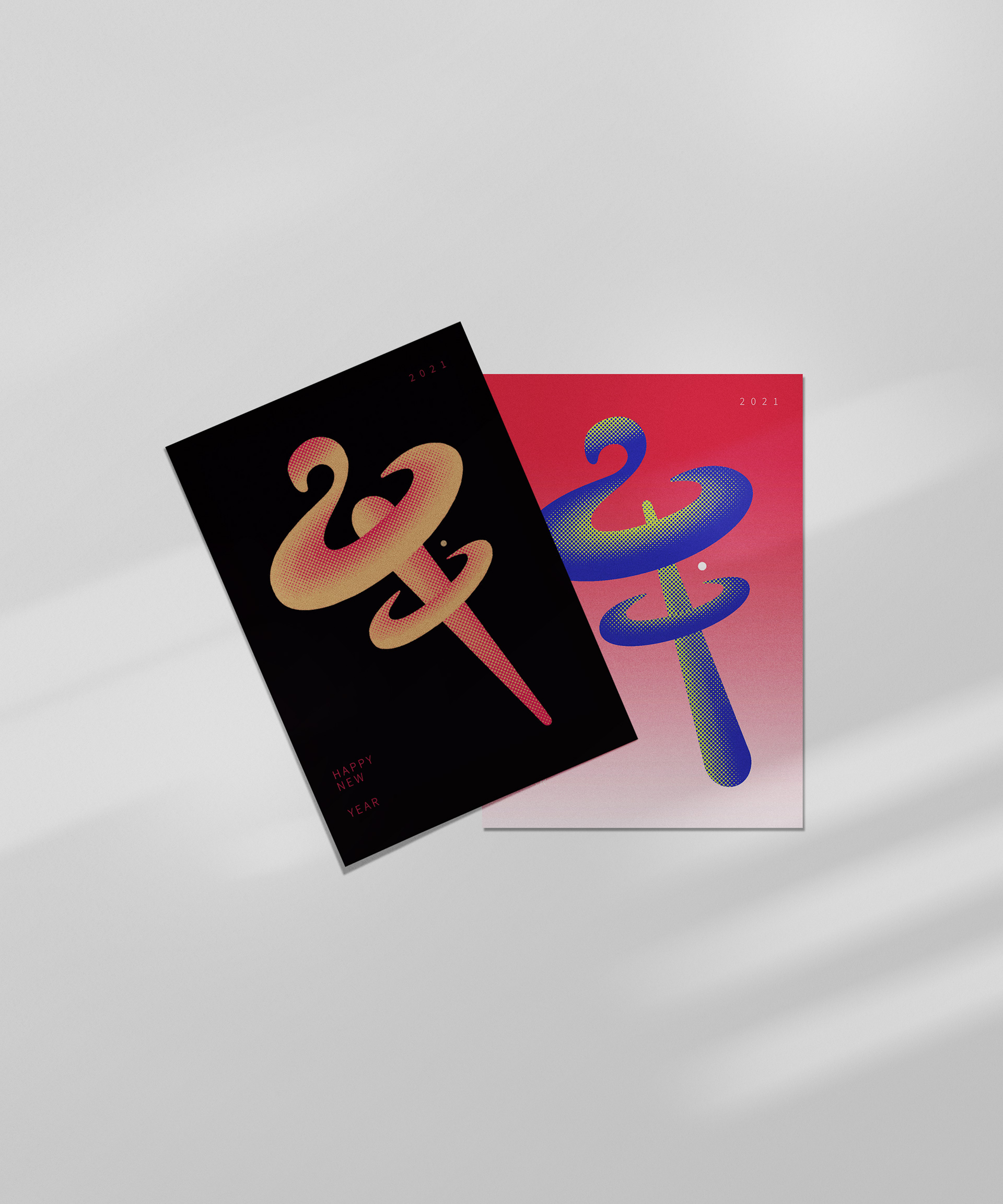 並用中國書法的感覺結合扭轉的形象做圖形設計