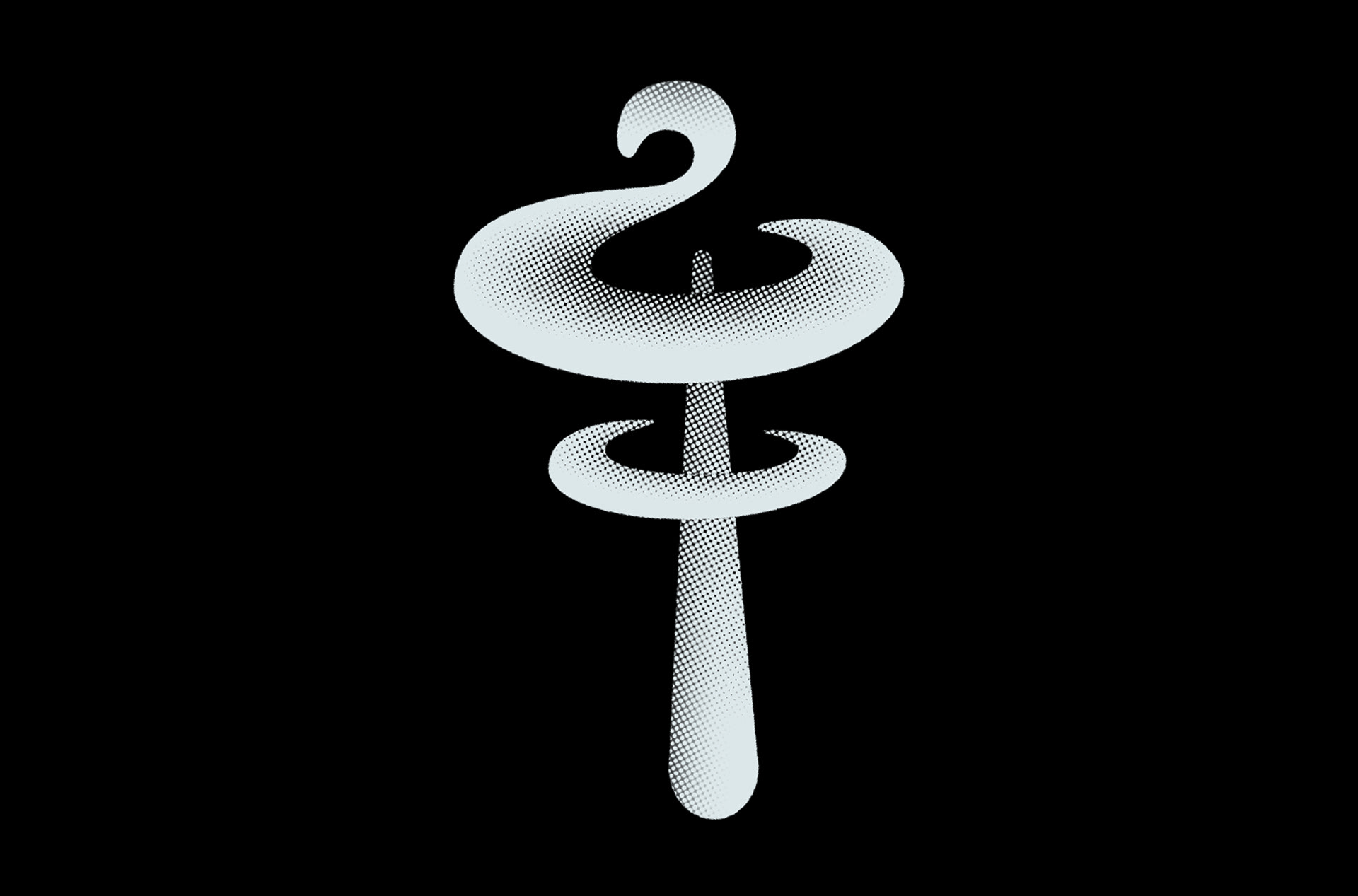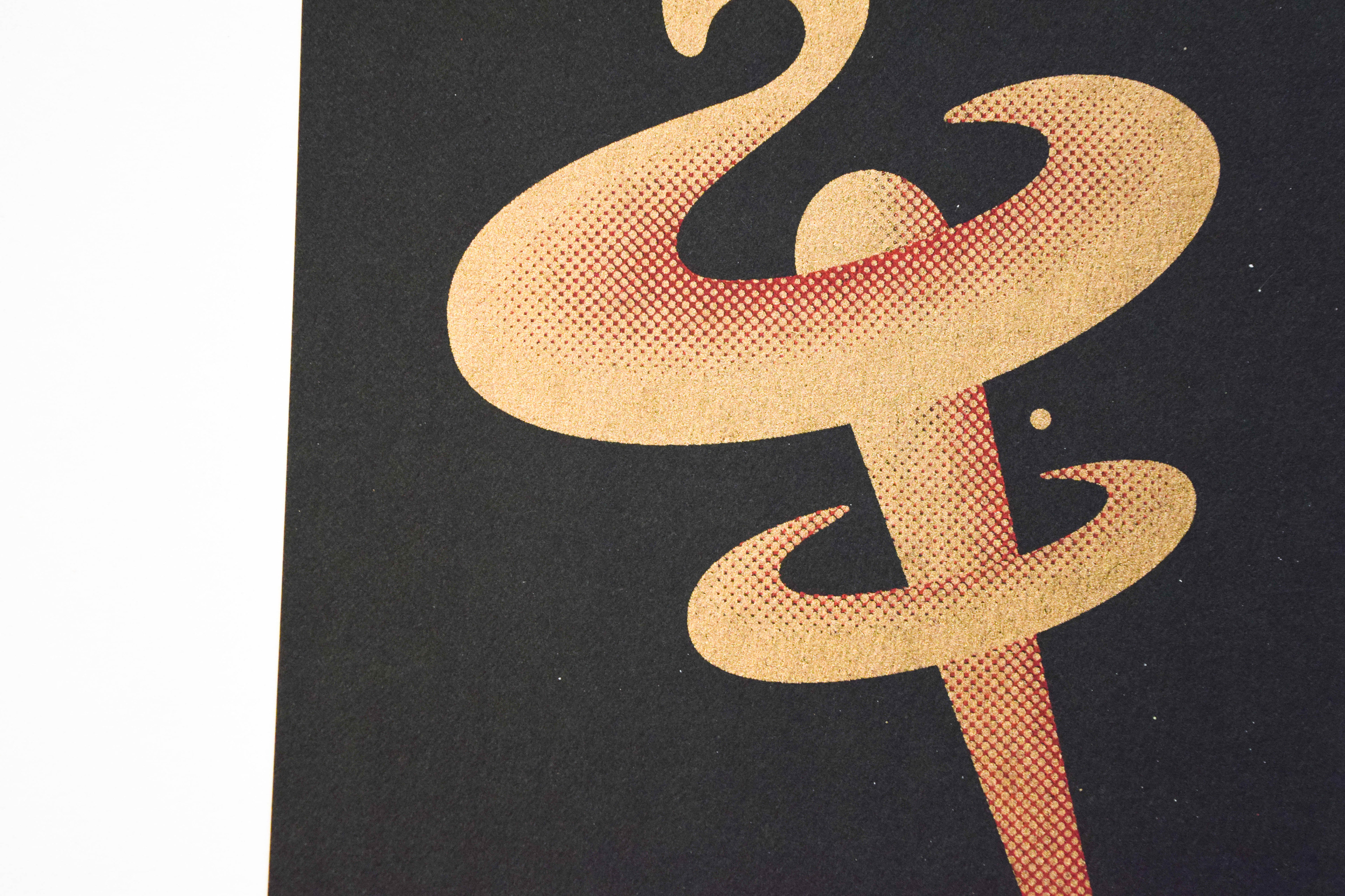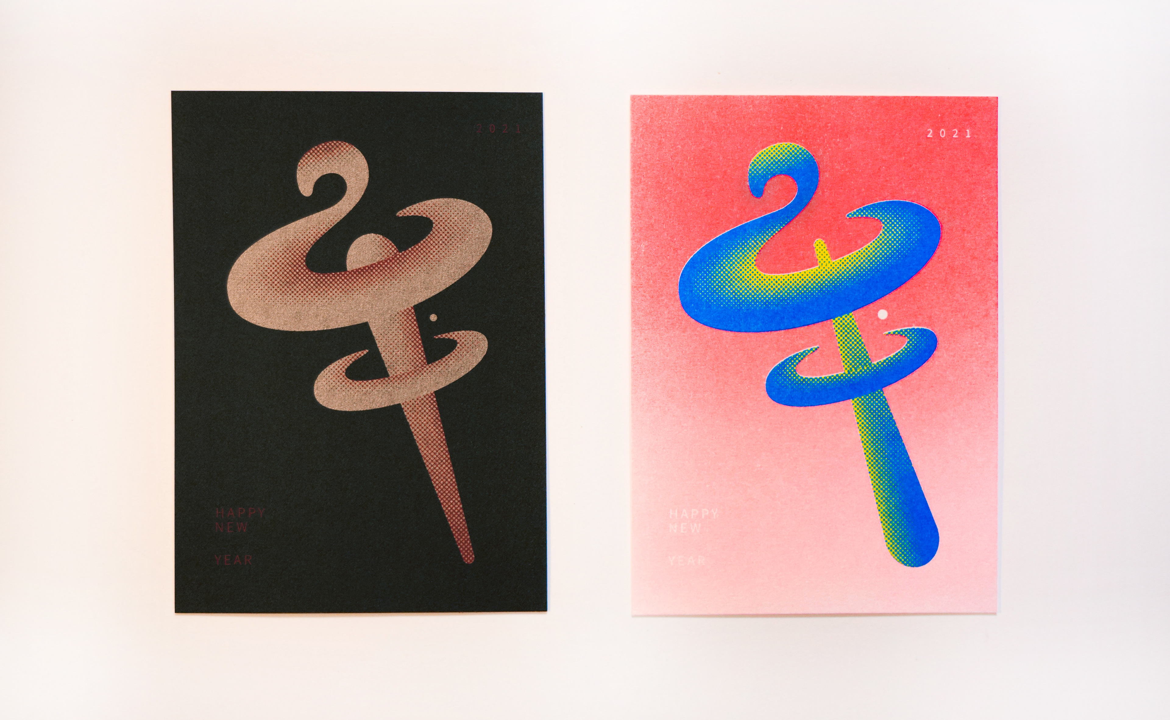 並用中國書法的感覺結合扭轉的形象做圖形設計