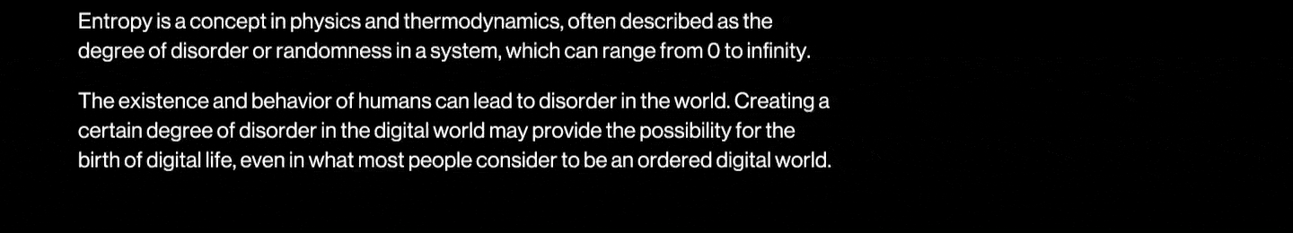 The brand identity and logo design are inspired by the artist’s surname “Wu,” transformed into forms resembling chromosomes and genes. This symbolic design reflects the duality of positive and negative relationships, embodying the vision of discovering life within entropy values. In the digital space, this concept opens the possibility of chaos, interaction, and creative evolution.